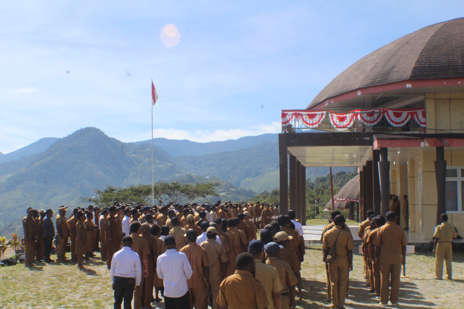 Dalam amanatnya, Bupati Willem Wandik menyampaikan apresiasi atas meningkatnya disiplin ASN dalam beberapa bulan terakhir, namun ia juga menegaskan bahwa masih banyak tantangan yang harus dibenahi terutama terkait tingkat kehadiran ASN di tempat tugas, baik di kantor dinas, sekolah, maupun fasilitas kesehatan di distrik-distrik.