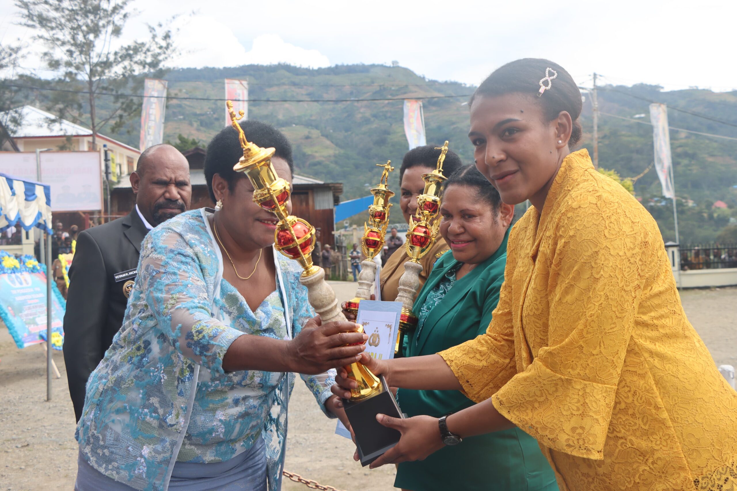 “Pergelaran pertunjukan tersebut dipersembahkan untuk para tamu undangan yakni Bupati dan Wakil Bupati Tolikara, Forkopimda, Para OPD dan ASN, Tokoh Agama, Adat, Kepala Suku, Pemuda dan Masyarakat dalam rangka memperingati hari Bhayangkara Ke – 79 Polres Tolikara.”