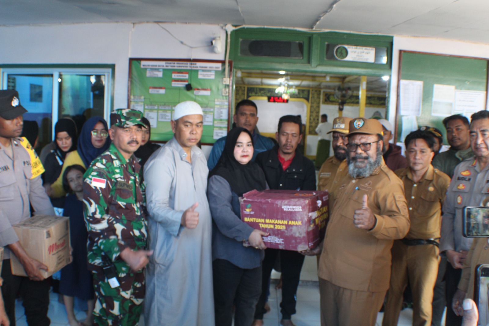 Bantuan tersebut diterima langsung oleh Bupati Tolikara Willem Wandik, S.Sos, didampingi Sekretaris Daerah Dr. Josua Noak Douw, Asisten II Dr. Imanuel Gurik, Kepala BPBD Feri Kogoya, serta Kepala Dinas Sosial Andrus Kogoya. Kegiatan ini juga dihadiri unsur Forum Koordinasi Pimpinan Daerah (Forkopimda), di antaranya perwakilan Polres Tolikara yang diwakili IPDA Kasrim selaku Kasat Binmas, serta perwakilan Kodim 1716/Tolikara yang diwakili Mayor Inf. Suprapto.