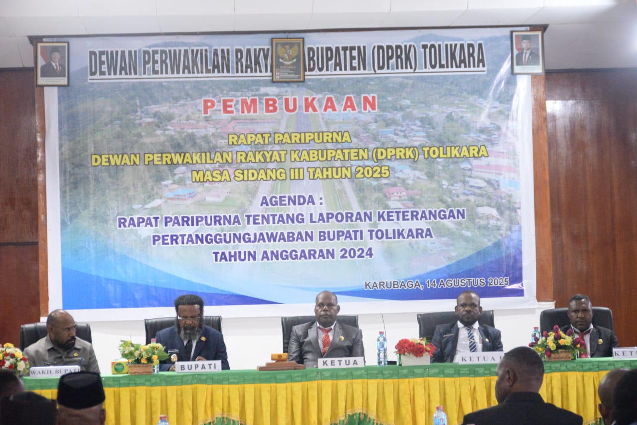 Karubaga, WP— Dewan Perwakilan Rakyat Kabupaten (DPRK) Tolikara menggelar Rapat Paripurna Masa Sidang III Tahun 2025 dengan agenda utama penyampaian Laporan Keterangan Pertanggungjawaban (LKPJ) Bupati Tolikara Tahun Anggaran 2024.