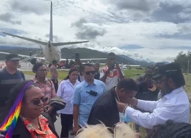 Kedatangan rombongan dekan dan dosen dari Fakultas Ilmu Sosial dan Ilmu Politik (FISIP) serta Fakultas Ekonomi Uncen disambut hangat oleh jajaran Pemkab Tolikara di Bandara Wamena, Rabu (5/11), sebelum melanjutkan perjalanan menuju Tolikara untuk memulai kegiatan kuliah perdana.