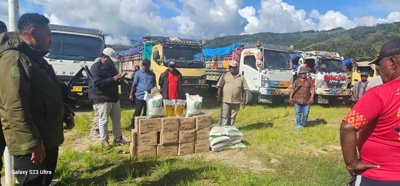 “Penyaluran bantuan dari Wamena ke distrik-distrik dilakukan oleh transporter Bulog dengan pengawalan Reskrim Polres Tolikara dan didampingi staf distrik serta petugas ketahanan pangan,” jelasnya.