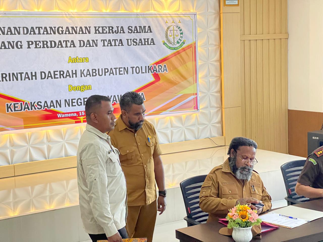 WAMENA, WP — Pemerintah Kabupaten Tolikara resmi memperpanjang kerja sama dengan Kejaksaan Negeri Jayawijaya sebagai Jaksa Pengacara Negara. Penandatanganan Memorandum of Understanding (MoU) ini bertujuan untuk memperkuat pendampingan hukum, khususnya di bidang perdata dan tata usaha negara.
