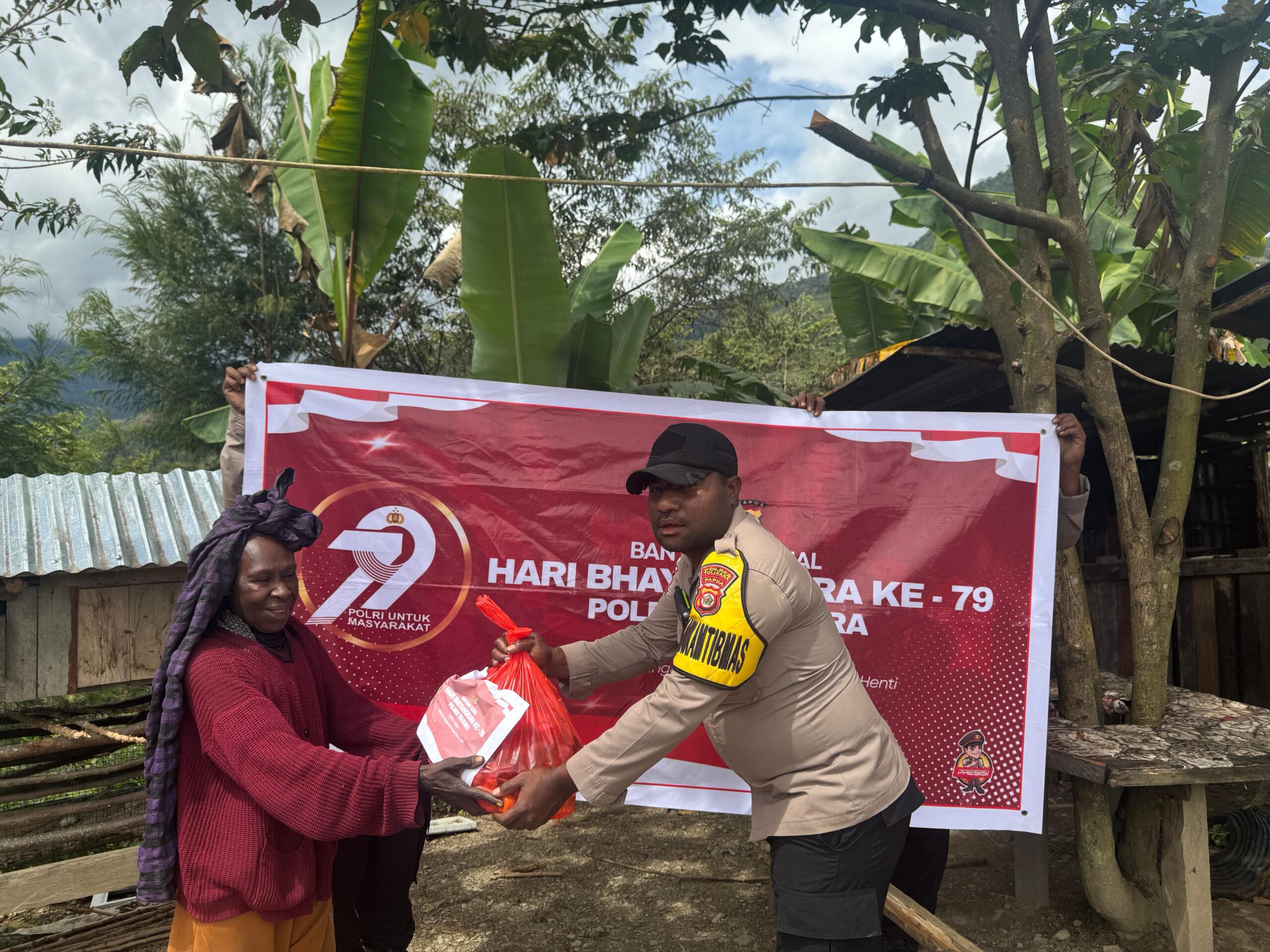 Tolikara, WP– Dalam rangka menyambut Hari Bhayangkara ke-79, Polsek Karubaga melaksanakan kegiatan penyaluran bantuan sosial Kapolres Kompol Roberth Hitipeuw, S.H.,M.H sebanyak 25 paket sembako untuk diberikan kepada masyarakat yang berlokasi di distrik wenam kab. Tolikara. Sabtu (28/6/2025).