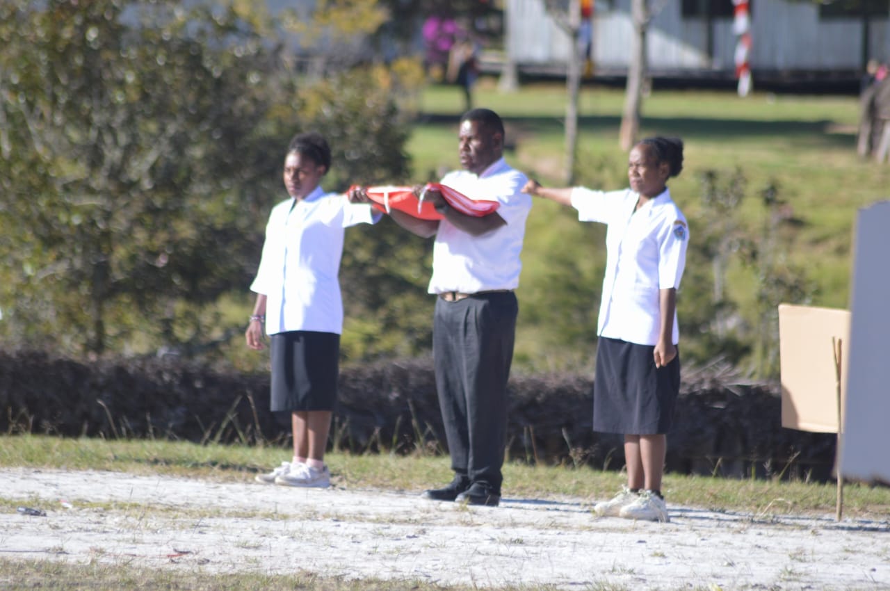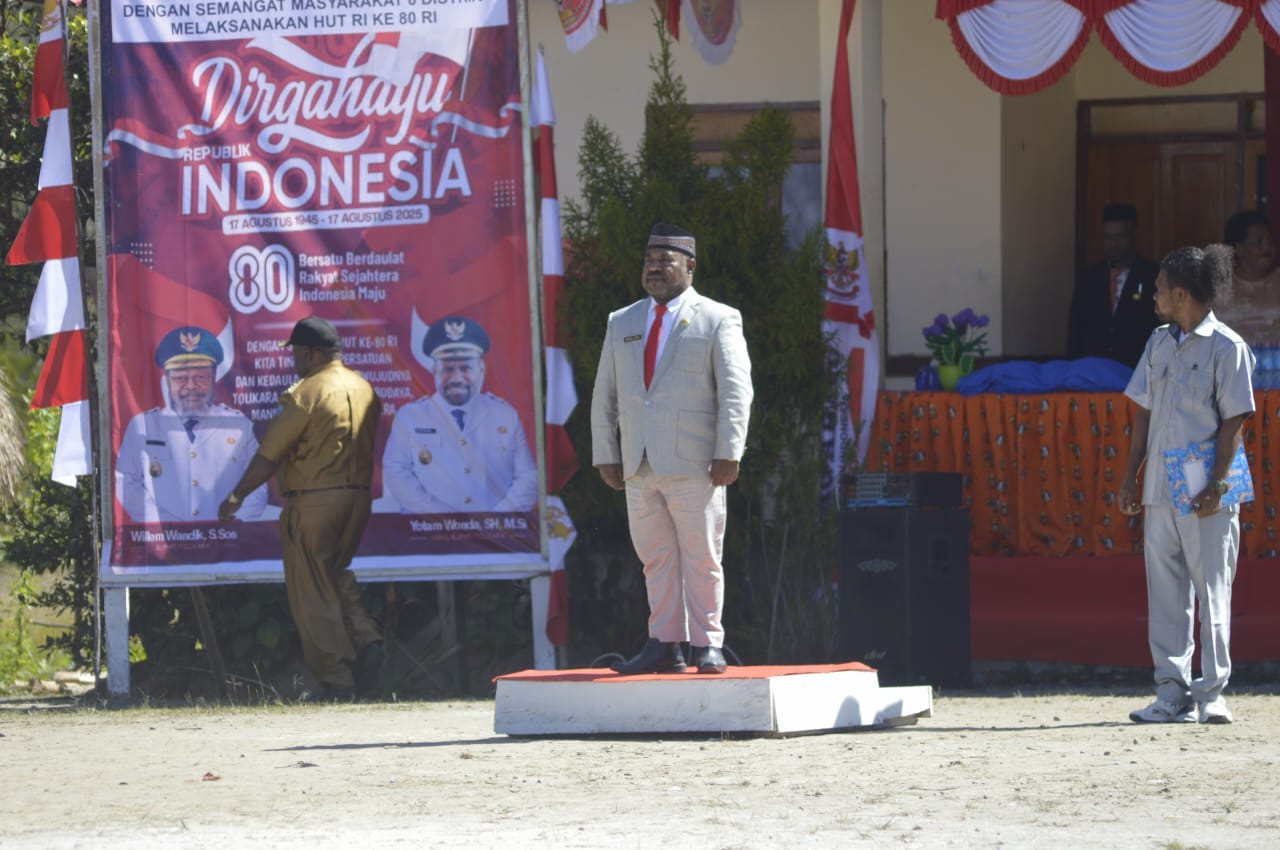 Upacara yang dipimpin langsung oleh Dr. Imanuel Gurik sebagai Inspektur Upacara ini turut melibatkan berbagai unsur, mulai dari aparat kepolisian, staf distrik, tokoh agama, hingga pelajar. Pengibaran bendera merah putih dilakukan dengan khidmat oleh pasukan pengibar bendera yang terdiri dari Kornelis Yikwa, Ina Wenda, dan Selvi Enambere.