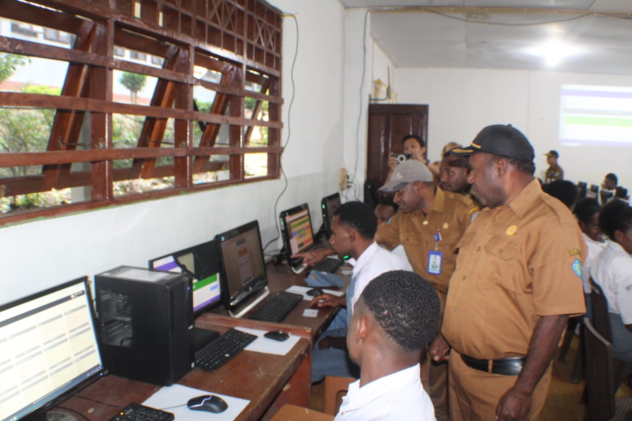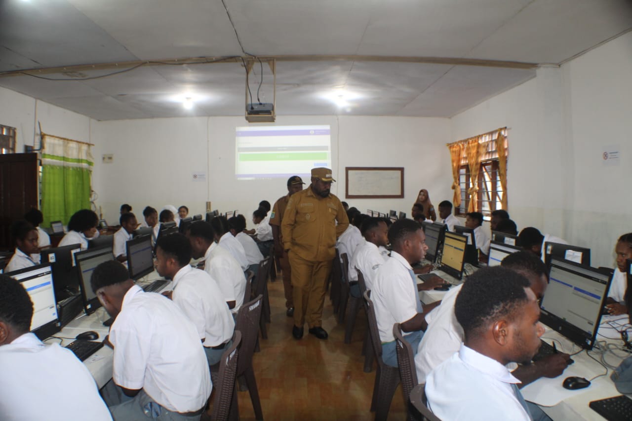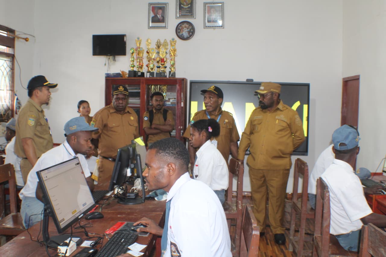 Tolikara – Pemerintah Kabupaten Tolikara melalui Wakil Bupati Tolikara Yotam Wonda, SH., M.Si. meninjau langsung pelaksanaan Ujian Sekolah Berbasis Komputer (USBK) Tahun Pelajaran 2025/2026 yang dilaksanakan secara serentak di Kabupaten Tolikara, Senin (9/3/2026).